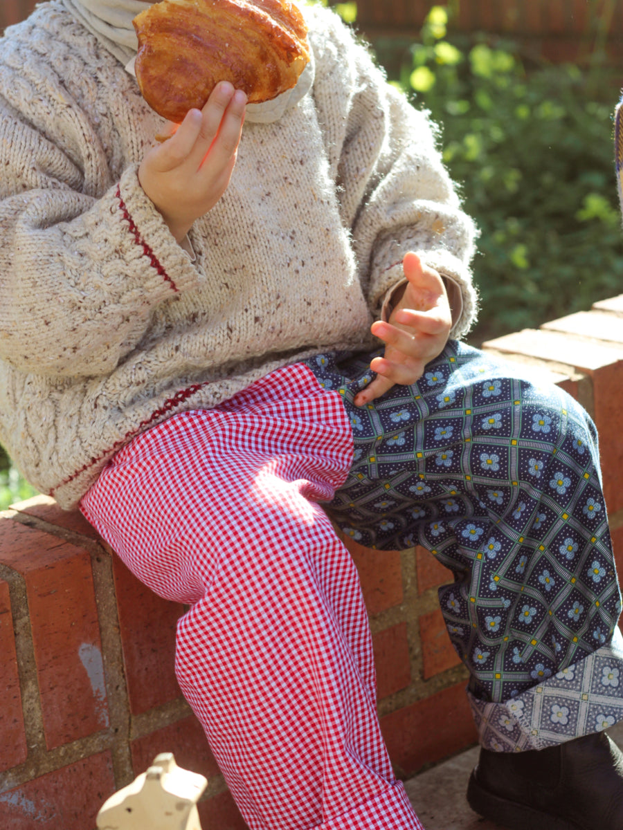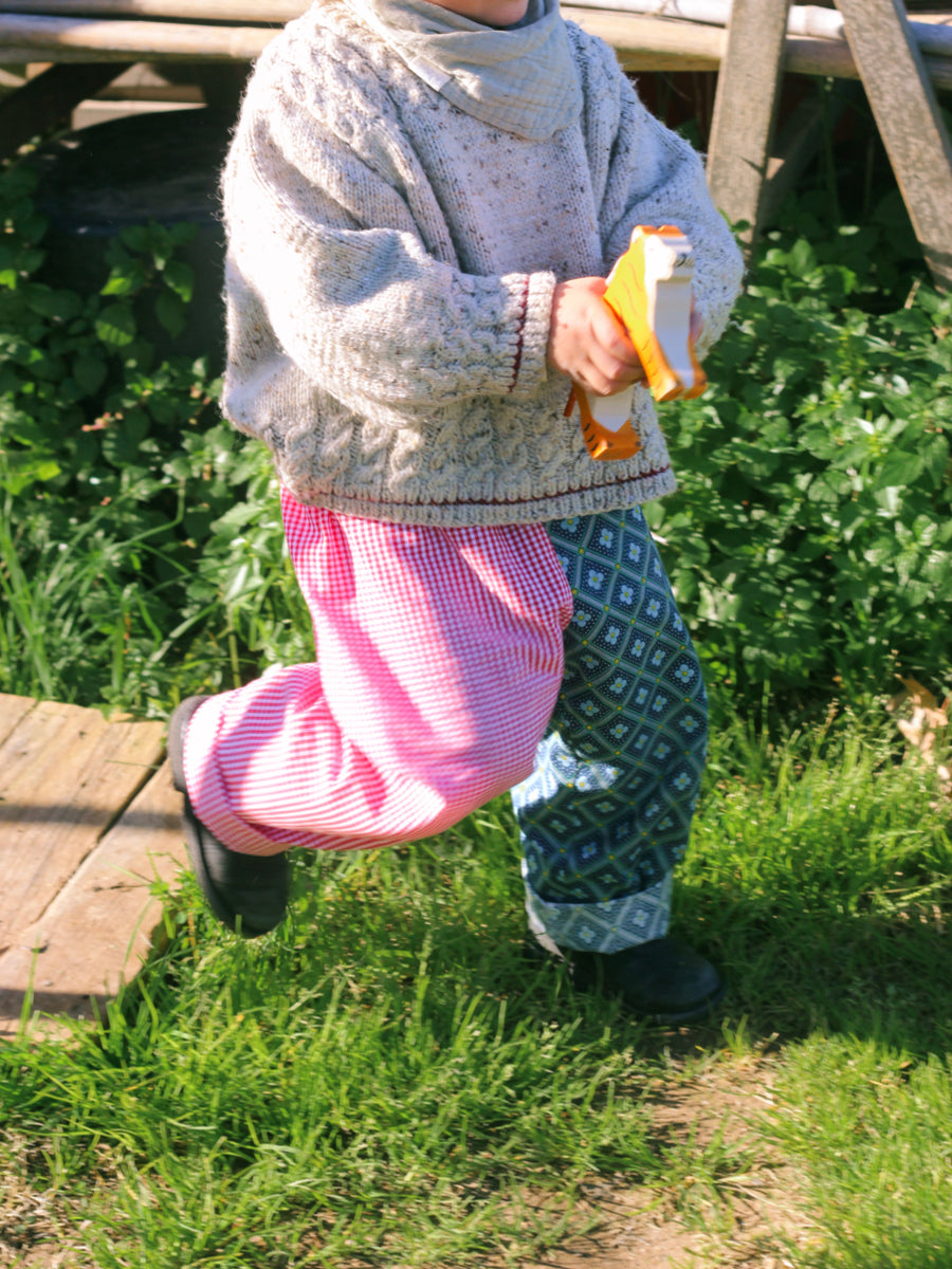 Pamina es un pantalón infantil cómodo y holgado que favorece la libertad de movimiento. La cintura elástica proporciona un ajuste holgado, lo que facilita su colocación y permite usarlo durante más tiempo.