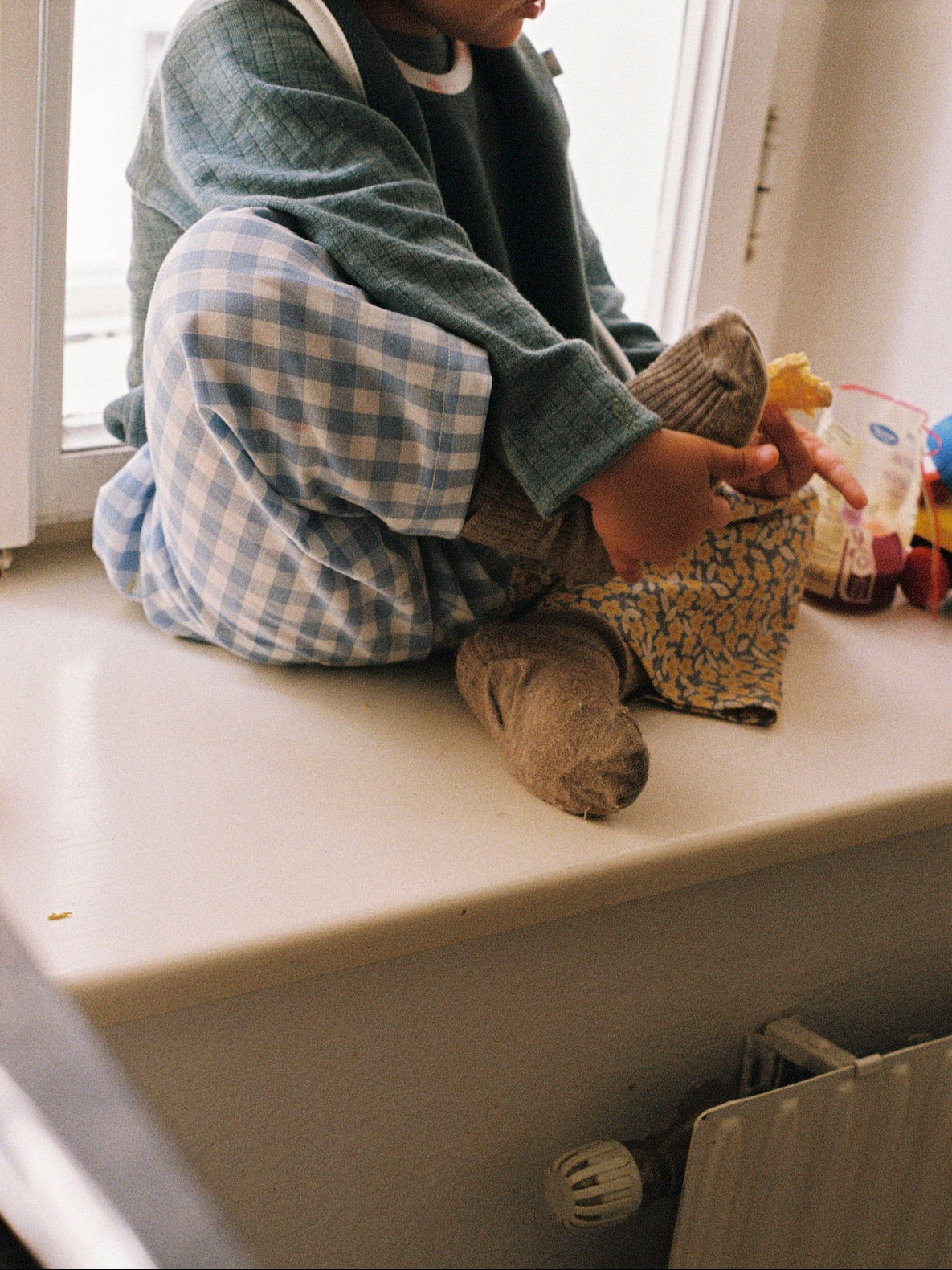 Yellow Lily es un pantalón infantil de corte holgado y confortable que favorece el libre movimiento. Su cintura elástica ofrece un ajuste relajado que facilita la tarea de vestirse y permite usar el pantalón por más tiempo. Estos pantalones están confeccionados con una combinación de tejido estampado floral azul cielo y amarillo y tejido a cuadros azul cielo. Ambos tejidos son 100 % algodón, con una textura suave y un grosor medio.